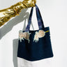I designed these tote bags by repurposing upcycled jeans from former collections with varied pieces of fabrics.