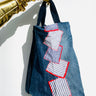 I designed these tote bags by repurposing upcycled jeans from former collections with varied pieces of fabrics.