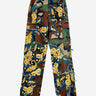 When working on ideas for camouflage pieces I am always interested in the juxtaposition of two contrasting objects, images, or ideas, so that the difference between them are emphasized. For this one-of-a-kind trouser, I chose this 80's style Sicilian baroque motive reclaimed from a dress to create a beautiful contrast against the camo. The electric blue embroidery thread is the element that holds the ideas together.