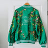When I reclaimed a dress full of embroidered flowers I immediately knew they would look incredible all over the green vintage bomber jacket. The neon yellow embroidery thread brings all the colors together into one glorious look.