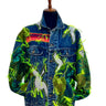 I designed this unisex vintage Lee denim jacket by collaging reclaimed foliage in beautiful shades of green cut from a skirt and black and white herons cut from a shirt. The neon lemon embroidery thread makes everything explode!