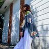 I found these faces on a pair of pants so I cut them and up-cycled them on this sweatshirt. I wanted to keep it simple and just added a message of freedom and my signature side zippers which you can open all the way up play with your look. I chose the blue embroidery thread because it does grant the piece a nice contrast while still keeping it serene.