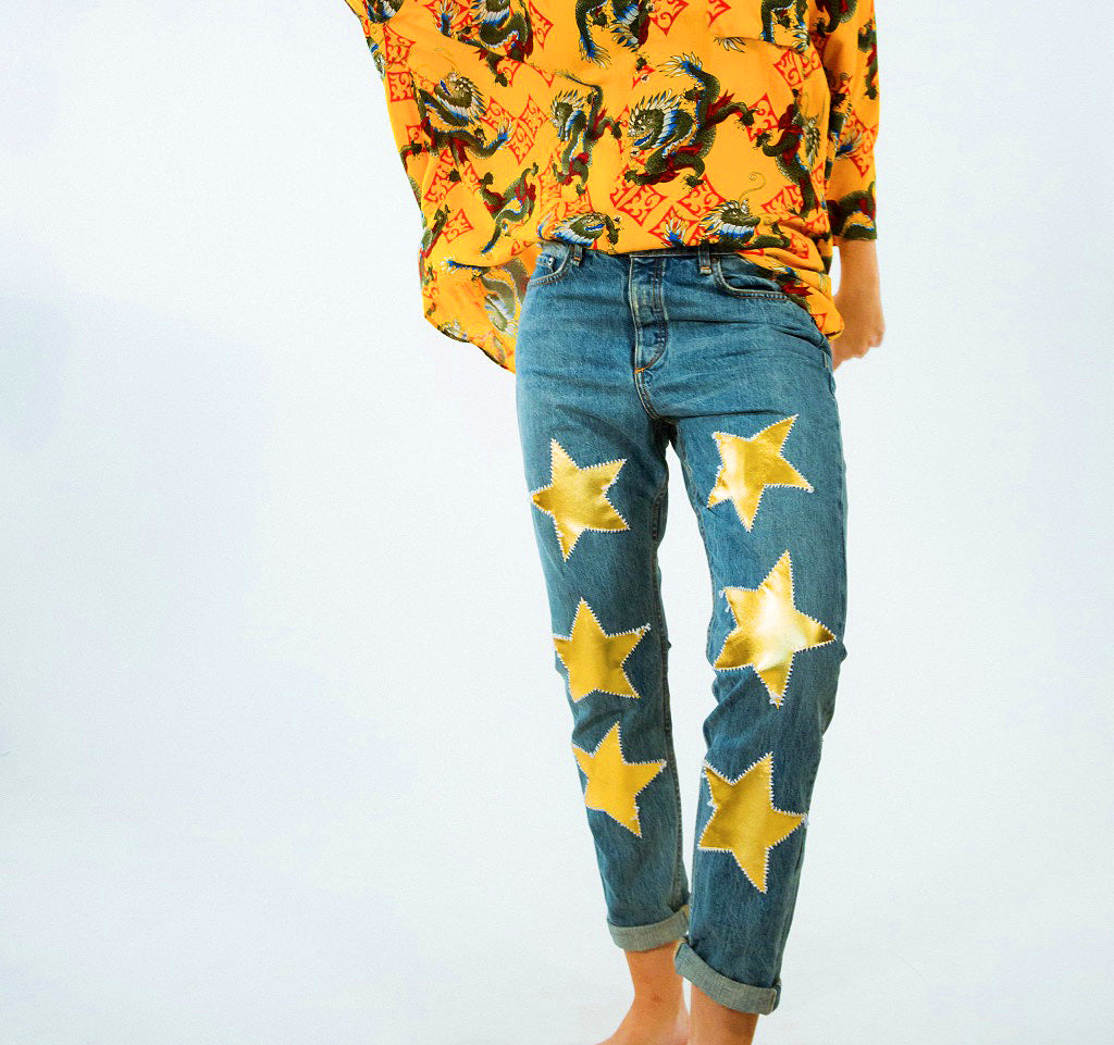 Gold Leather Stars Boyfriend Jeans