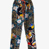 I had just returned from a great vacation, I was feeling free and colourful and these pre-owned pants and the jacket are the result of that! I mixed reclaimed toucans cut from a dress and deep green jungle foliage cut from a skirt, and then added white flowers cut from a pant to keep the look crip and fresh. The turquoise embroidery thread adds light to the beauty of the piece.
