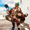 This camo jacket is embellished with a garden full of orchids. Embroidered with a deep garnet thread, those orchids melt into the camouflage.