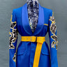 This gorgeous cobalt blue vintage longline tux definitely, and without a doubt, screamed for black and white motifs embroidered with yellow thread, both would create an incredible contrast with that backdrop. For that I chose these great florals reclaimed from a curtain.