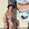 This beautiful piece was inspired by one of my favorite movies of all time! I adorned this reclaimed jacket with a vintage Italian tablecloth and dead stock red ribbing. The movie graphic in the back was gifted by a friend.
